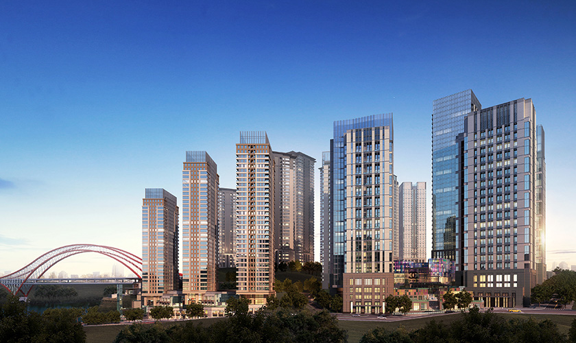 星耀天地項(xiàng)目位于重慶市江北區(qū)北濱二路,包括2棟高層辦公樓,3棟高層住宅及7棟多層辦公樓及商業(yè)和車(chē)庫(kù),總建筑面積約230000㎡,為現(xiàn)澆框架剪力墻結(jié)構(gòu),最高建筑高度為99.4米。